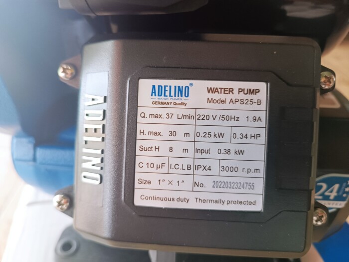 Máy bơm tăng áp điện tử Adelino 250W – Bơm áp không ồn !